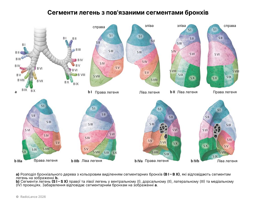 Сегменти легень (S1–S10)